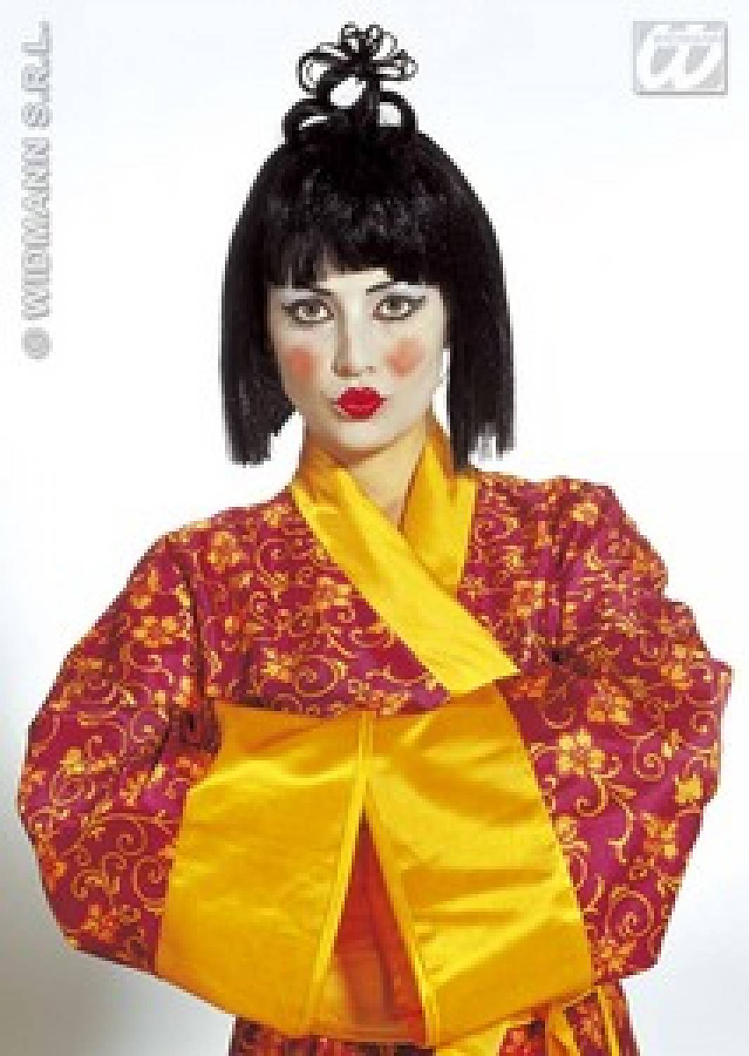 Deze Japanse pruik met sluik haar voor echte sushi liefhebber is grappig voor het pimpen van de aanstaande bruid op het vrijgezellenfeest. Met deze Japanse pruik verander je jouw vriendin in een liefdevolle Japanse dame en daar is niets mis mee op zo'n wilde laatste feestavond met vrienden vóór de huwelijksdag. Er zijn volop kleurrijke feestpruiken en rare Chinese en Japanse kapsels dus voor elk vrijgezellenfeest thema zit er wel iets bij.