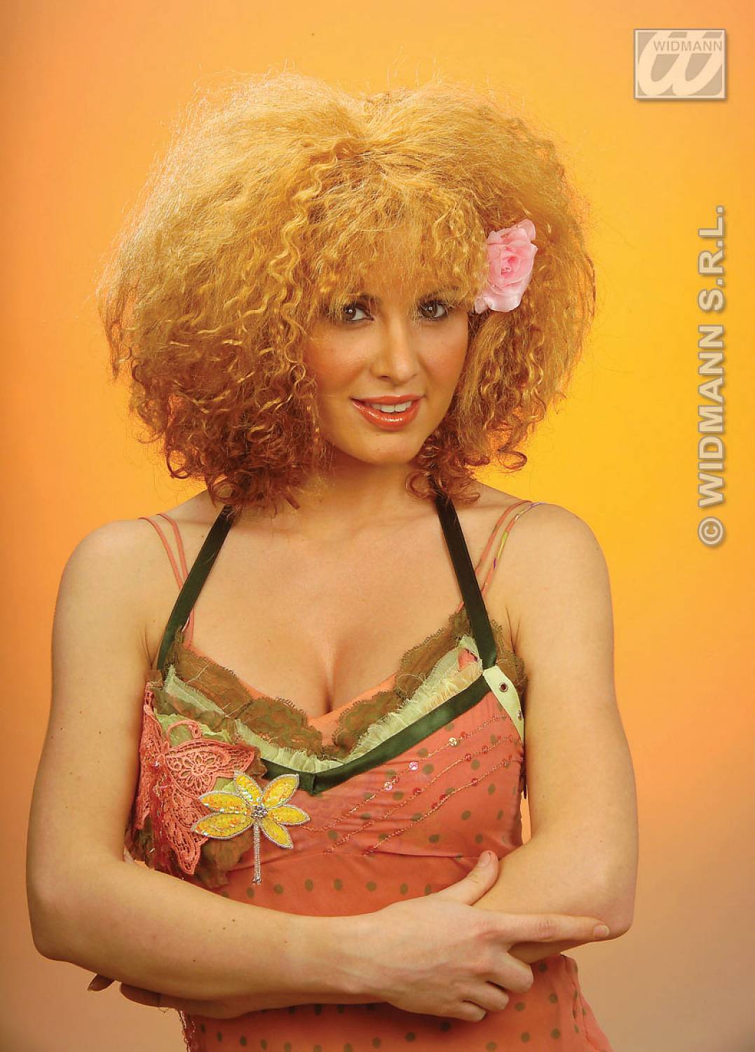 Feestpruik Beyoncé met bloem voor henparty's en vrijgezellenfeesten. Voor prachtige party-pruiken en de wildste en mafste kapsels moet je hier zijn.Lees meer