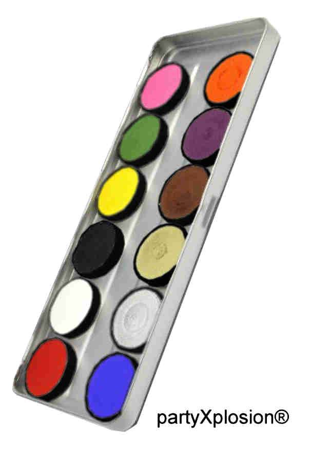 Schminken en grimeren hoort ook bij een vrijgezellenfeest. Met deze 12 basic kleuren schmink set op waterbasis wordt gekke bekken maken een koud kunstje
