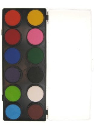 Schminken en grimeren hoort ook bij een vrijgezellenfeest. Met deze 12 kleuren standaard schmink set op waterbasis wordt gekke bekken maken een koud kunstje